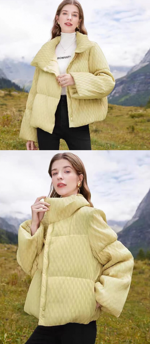 本期給大家推薦的是仿鹽縮壓花面料,此面料采用特殊的立體壓花工藝,該面料較鹽縮印花面料而言,揚長避短,它的花型凹凸感強,花型立體時尚,不破壞面料本身強力,面料防鉆絨,防潑水,透濕透汽,手感細膩、柔軟、輕薄,此款面料更加健康環保,并且生產成本更低。在這個冬天,助你趕上本季的第一趟時髦班車,鎖定不能錯過的驚喜。