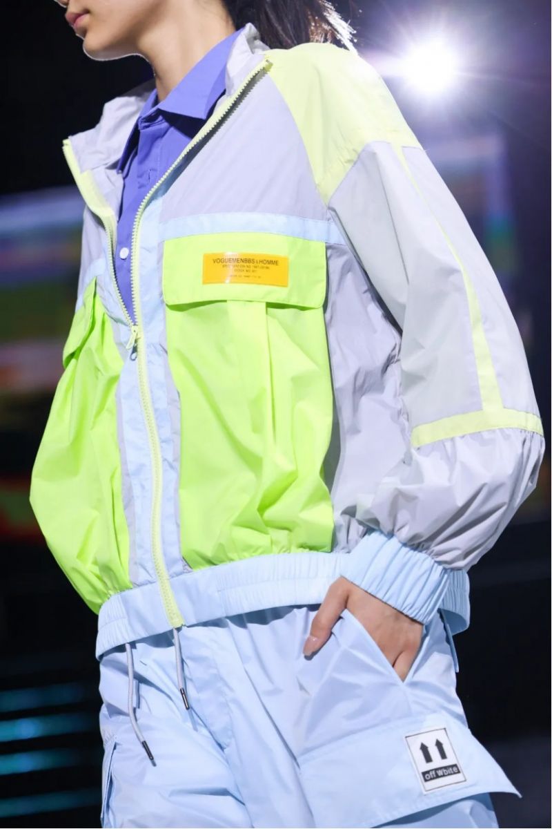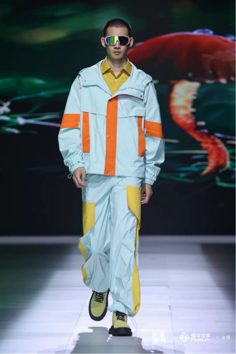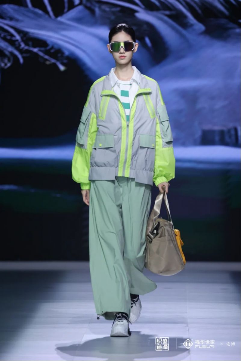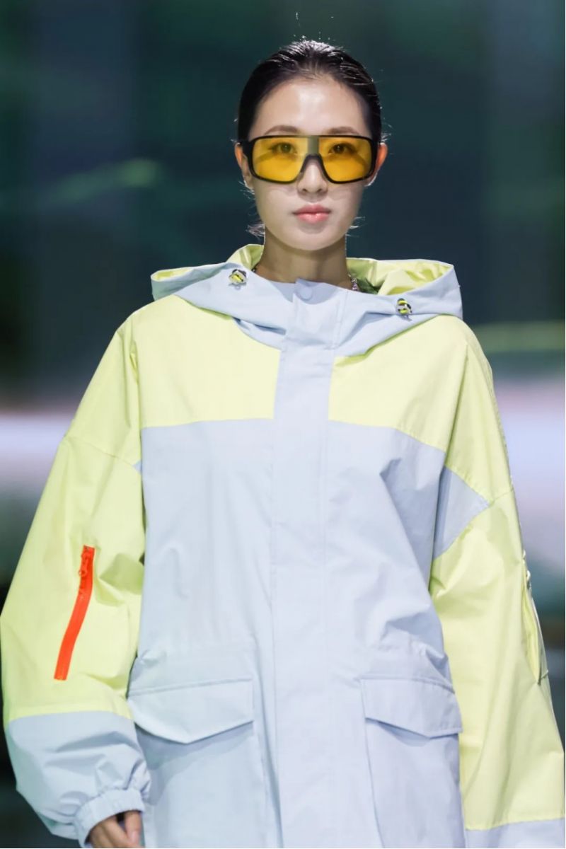 本系列設計色彩取之于自然萬物中的天、地、水、植,例如嫩芽黃、萊姆綠、香水藍等等。同時在面料上的選擇也考慮到了不同溫度環境下的穿著體驗,包括不同克重的錦綸、滌綸面料,同時考慮到了環保因素,一部分漁網回收的錦綸同樣運用到了此系列中。通過色彩與面料的巧妙搭配,讓本系列整體風格顯得明快自然、舒適閑逸,通勤與戶外的有機結合,也讓此類輕戶外風格更能得到當下消費者的青睞。