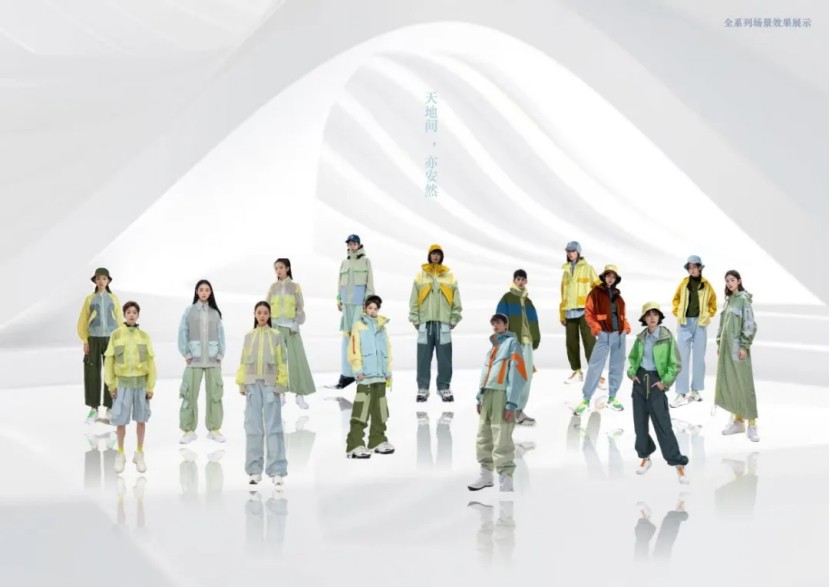 因此 ,“天地間,亦安然”從現實方面所倡導的是當今時代背景之下,人們往往被四面八方的紛繁壓力所困擾,走近自然,觸摸自然,共生共融,自由生長,未嘗不是一種選擇。從而關注到戶外服飾的需求以及在設計上對自然保護的考量。
