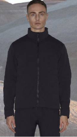 經(jīng)向采用28D半消光滌綸低彈絲,緯向采用28D半消光滌綸低彈絲,經(jīng)后整理貼PTFE膜加單面針織布的方式制作。面料具有防水的功能,該面料可設(shè)計制作成商務(wù)夾克,采用立體分片式剪裁技術(shù),創(chuàng)造能夠展現(xiàn)體形的一指寬完美貼身距離,充分映射出絕佳身型,且能夠最大限度保存體溫氣流;簡約設(shè)計,防風(fēng)防潑水,利用合成棉填充,保暖舒適,簡潔立領(lǐng)設(shè)計加上彈性編織袖口;隱藏式口袋設(shè)計美觀大方。
